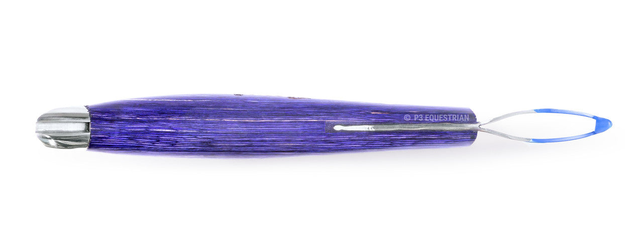 Featuring a hooked blade, this loop hoof knife is perfect for picking out debris before trimming, making it an essential hoof trimming knife for both professional and working farriers. The standout purple wooden handle offers a comfortable grip and a bold look in your farrier tools collection.