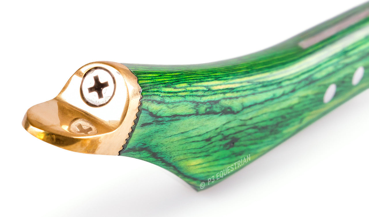 The wide blade delivers smooth, clean cuts for efficient trimming, making it one of the best farrier tools for maintaining hoof health. A distinctive feature is the brass topper fitted at the reverse end, ideal for use when burning on shoes—an essential detail for serious farriers.