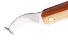 The Maurer Hoof Knife was inspired by a desire to keep the user’s wrists straighter reducing the stress on the wrist joint caused by twisting and bending. The belly in the blade itself allows for the last 20mm of the knife to be flat whilst the wrist is at a comfortable angle further reducing wear and tear.