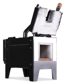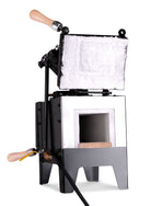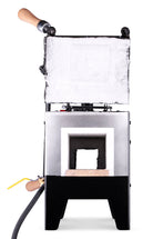 The NC Knifemaker is a double burner gas forge made especially for forging blades or Damascus. It features specially insulated doors on both ends to allow easy access to Damascus billets and to allow the forging of longer pieces. This carefully designed forge boasts typical NC Forge features including their exclusive high efficiency burners, push button ignition and efficient heating and cooling processes. This forge is light and easy to maneuver making it highly transportable.