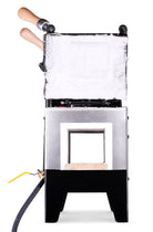 The NC Knifemaker is a double burner gas forge made especially for forging blades or Damascus. It features specially insulated doors on both ends to allow easy access to Damascus billets and to allow the forging of longer pieces. This carefully designed forge boasts typical NC Forge features including their exclusive high efficiency burners, push button ignition and efficient heating and cooling processes. This forge is light and easy to maneuver making it highly transportable.