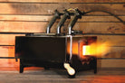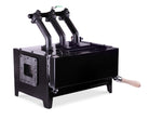 Ideal for competition shoemaking or forging Damascus blades due to rapid heat recovery, the NC Whisper Lowboy is a low-profile three burner farrier gas forge. The push-button forge promotes a uniform heat that reaches 2350 degrees C from the high efficiency burners. The Whisper Lowboy is easy to handle and transport.