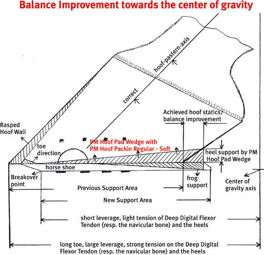 Restores the hoof-balance by enlarging the weight bearing area, eliminating increased strain on tendons, heels and soles.