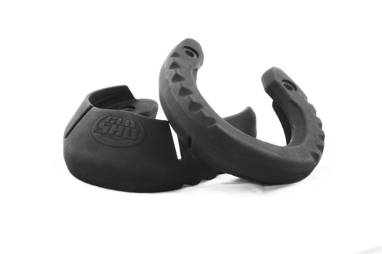 • The rubber on the bottom will wear down to the aluminum shoe over time, then the aluminum shoe will start to wear. This gives the GluShu a 6-10 week shoeing cycle.