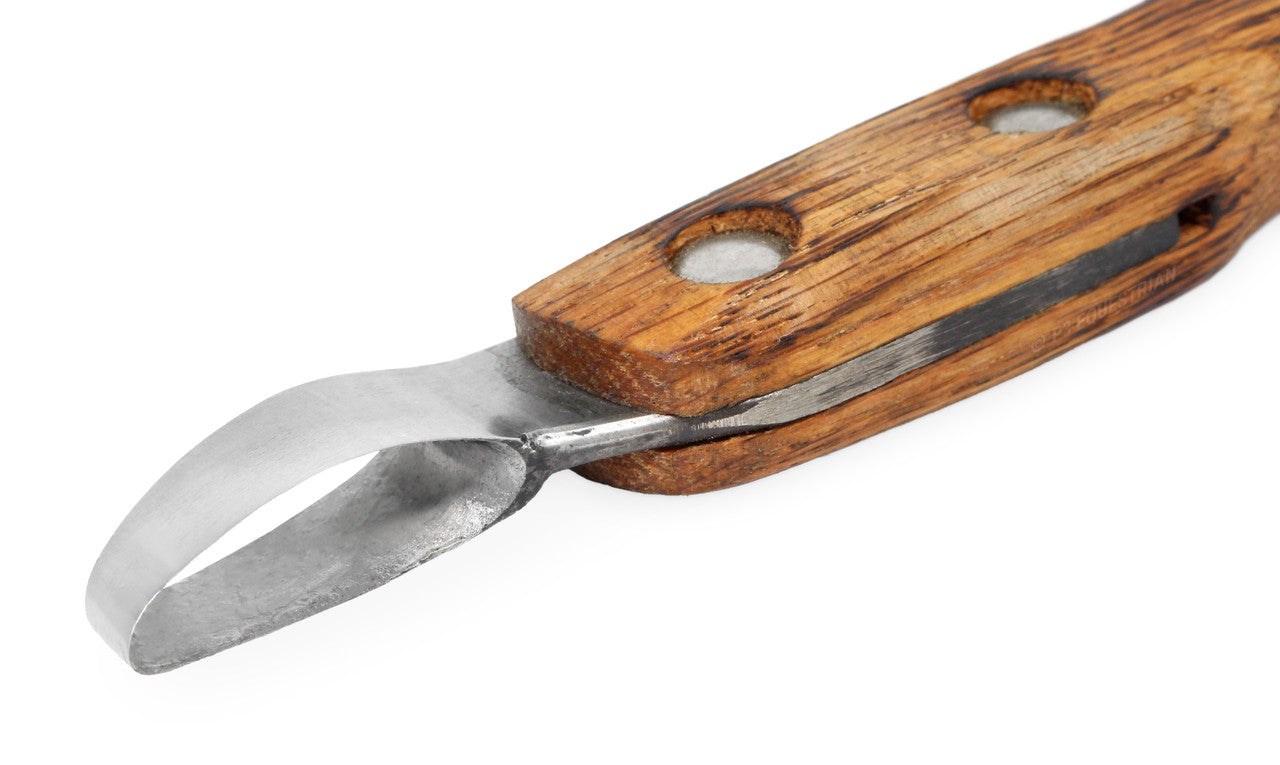The E (Explorer) knife boasts a sturdy 1 1/4 inch (30 mm) loop blade, meticulously crafted to meet the rigorous standards of farriers and veterinarians globally. Each blade embodies precision, durability, and the distinctive craftsmanship that characterizes the Dusky Forge legacy. Ideal for tough, dry hooves.