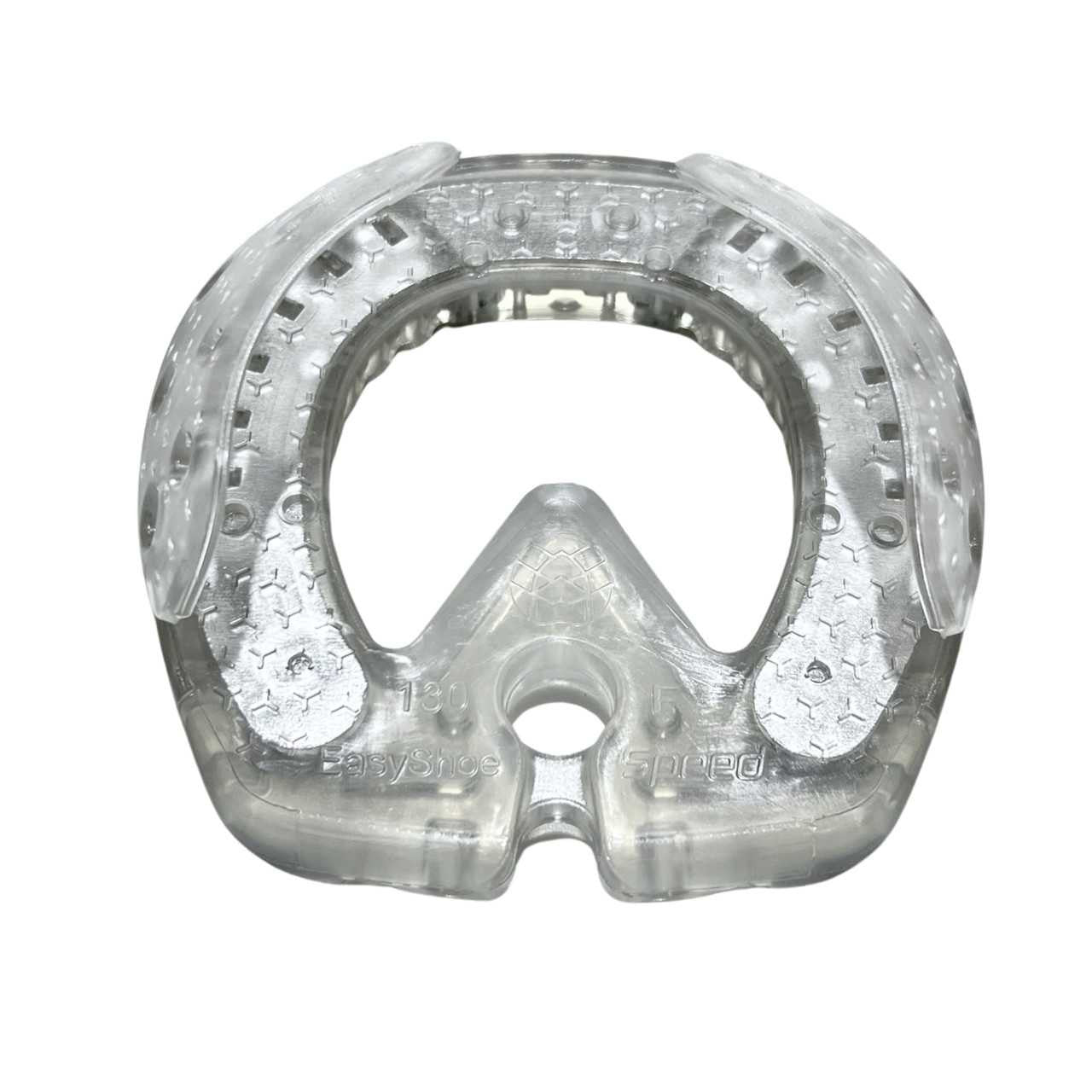The EasyShoe Speed Metal combines the benefits of a hybrid glue-on/nail-on urethane horseshoe featuring aluminum inserts.